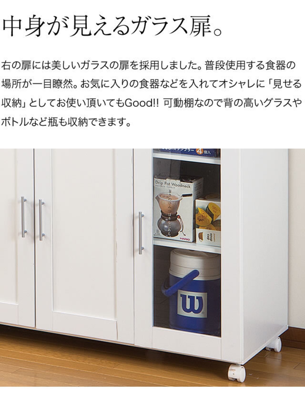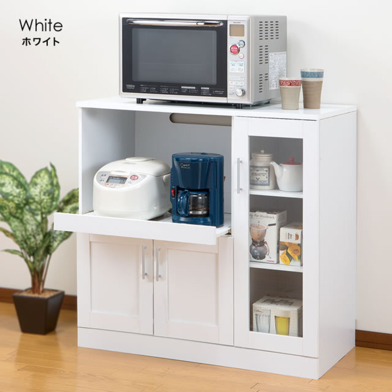 ●カップボードとカウンターワゴンの引き出しは、出し入れしやすいスライドレール式。