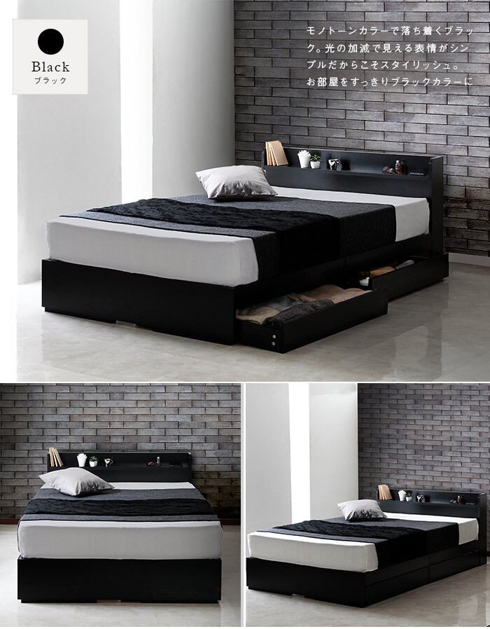 シンプルなデザインでも実用的な多機能をしっかり備えたベッドフレームです。
