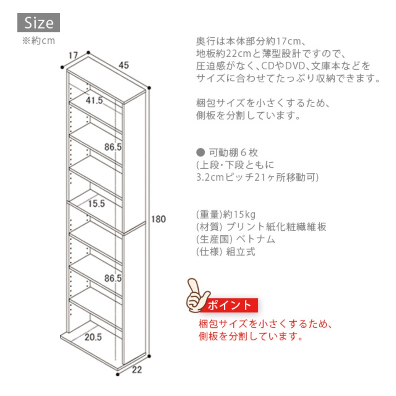 【商品サイズ】約 横45×奥行22(17)×高さ180cm