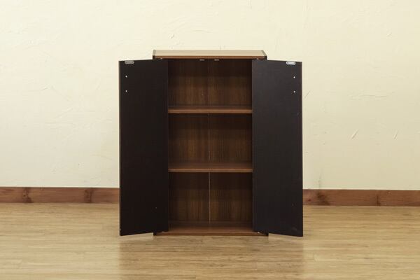 このシェルフは、一般的なオープンシェルフとは異なり、扉が付いているため、収納物が見えないことでスッキリとした印象を与えます。お部屋を整理整頓したい方や、ディスプレイ効果を重視したい方におすすめのアイテムです。