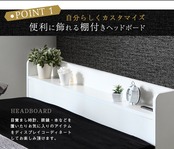シンプルに見えても機能は豊富! ヘッドボードに棚があり、スマホやメガネ、目覚まし時計などのいつも使い小物を手元に置けます。